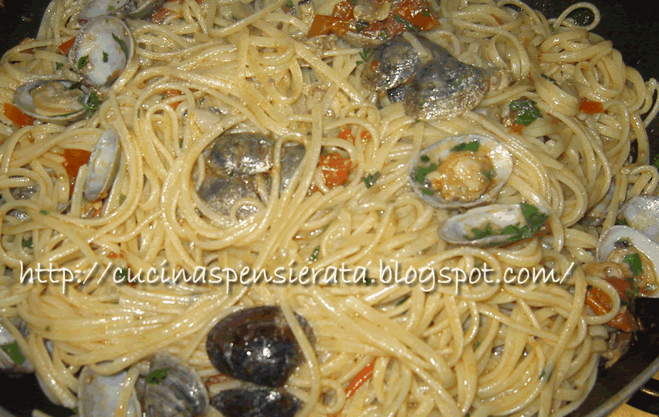 After about ten minutes off the heat and sprinkle with plenty of chopped parsley, black pepper and a drizzle of olive oil. Drain the linguine and toss them with the sauce a few moments before Place on the plate. Very good!