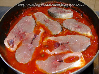 Aggiungere i tranci di capone nel sugo e cuocere a fuoco moderato per un'altra decina di minuti, rigirandoli a metà cottura.